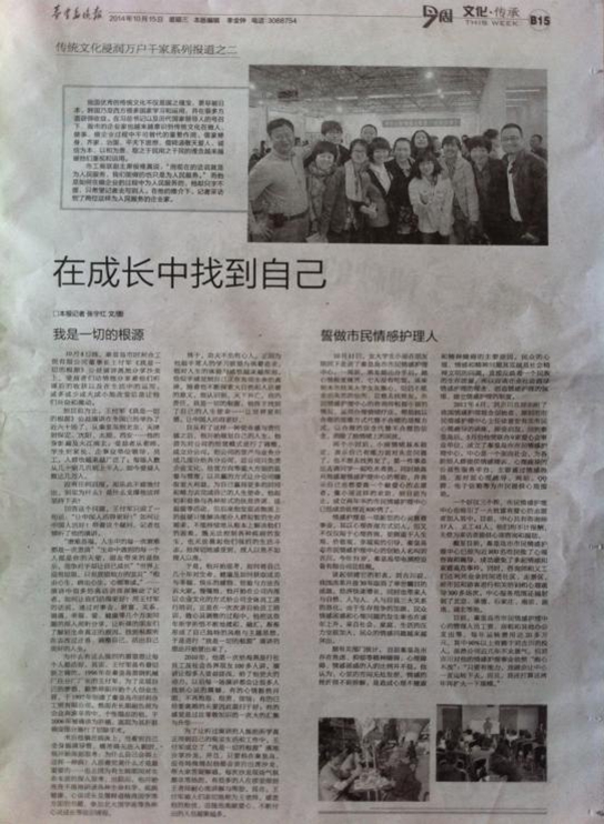 談起創(chuàng)建它的初衷,劉吉川說,我國(guó)改革開放30年取得了舉世矚目的成就,經(jīng)濟(jì)快速增長(zhǎng),同時(shí)也帶來人與自然、人與人、人與自我三大關(guān)系的惡化。由于生存競(jìng)爭(zhēng)的加劇,民眾情感困惑和心理問題越來越突出。