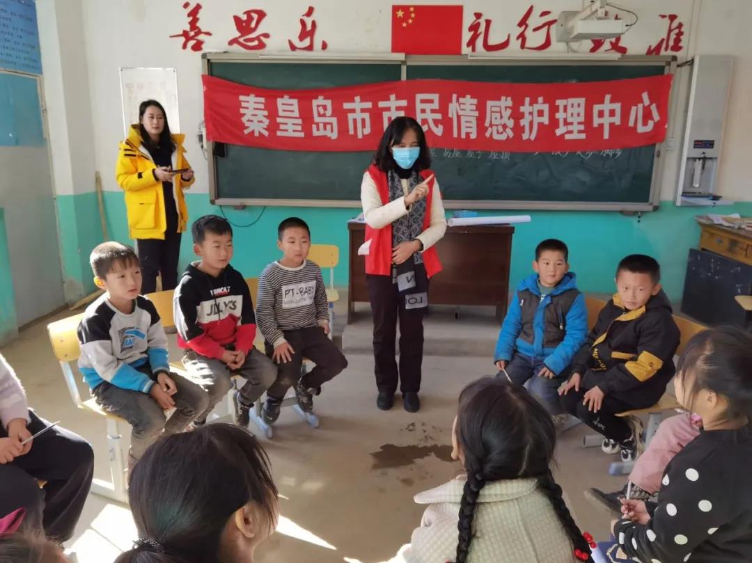 2020年11月27日秦皇島市市民情感護理中心的心理老師和志愿者一行12人,驅(qū)車一小時來到位于秦皇島市海港區(qū)最偏遠的山區(qū)小學九門口和東賀莊小學,為山里的孩子們送去滋養(yǎng)心靈的心理健康活動課。
