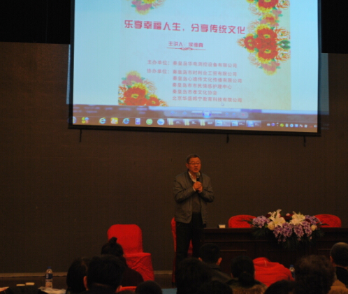 本次講座由河北省政協(xié)委員、秦皇島市工商聯(lián)副會長、秦皇島金維達(dá)機械有限公司董事長、“善人道”團隊隊員――侯維真老師及其團隊全程策劃,侯老師及其團隊成員,為大家感情真摯、言辭懇切地分享了自己學(xué)習(xí)傳統(tǒng)文化的真知灼見,與會人員無不受益,會場掌聲此起彼伏、高潮迭起;動情之處,會場許多人一起抽泣、哽咽,受益匪淺。活動中,大家還一起誦讀了中華傳統(tǒng)典籍《弟子規(guī)》,欣賞了習(xí)近平總書記作詞的歌曲《志成學(xué)子之歌》(習(xí)近平主席寄語),滿滿的正能量在會議大廳流淌。午休時間,孝文化協(xié)會還為大家獻上了文藝表演,以優(yōu)美的舞蹈、動人的歌聲、激情的朗誦、幽默的三句半等等文藝方式演繹著中國傳統(tǒng)文化,內(nèi)容精彩、形式多樣,倍受觀眾喜愛,贏得了一次又一次熱烈的掌聲!