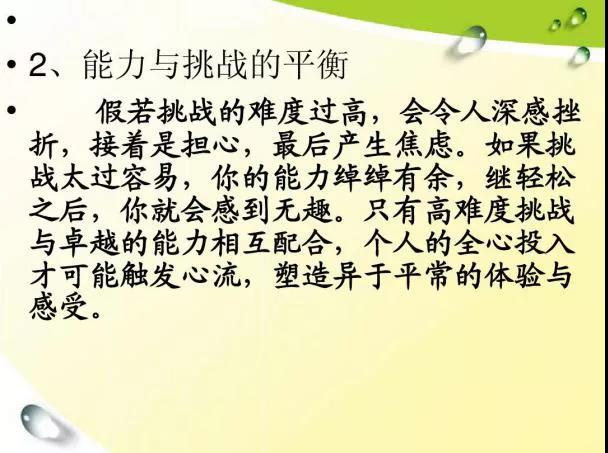 當(dāng)你全身心地投入某件事,達(dá)到忘我的程度,并由此獲得內(nèi)心的秩序與安寧時(shí),一種極大的滿足感悄悄地潛入了你的心,使你快樂。這就是我們今天要來學(xué)習(xí)和探討的“心流”體驗(yàn)。