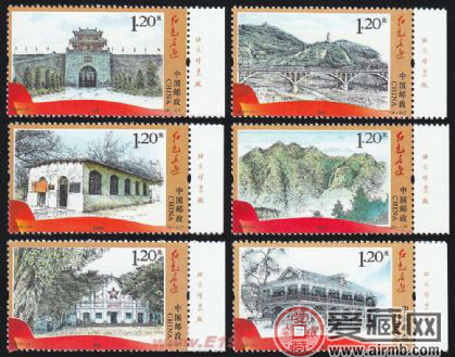 為迎接2012年中國共產黨第十八次全國人民代表大會的召開,配合紅色旅游,中國郵政集團公司于2012年6月30日發(fā)行了《紅色足跡》特種郵票一套。2012年6月30日,“紅色足跡”特種郵票首發(fā)式在井岡山舉行。2012-14《紅色足跡》特種郵票?小版張一共有六枚郵票組成,分別是井岡山、瑞金、遵義、會寧、延安、西柏坡六處老革命根據(jù)地的圖案,面值全部是1.20元,設計者是巧妙的運用了這種鋼筆淡彩的手法,將每一處根據(jù)地完美的展現(xiàn),并且還是小版張郵票,無論是從設計、題材、形式方面來看,這都是一套極有價值的郵票,所以收藏者一直對它的熱度沒有減少。