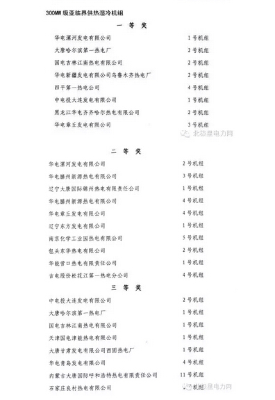 【重磅】2014年全國火電300MW級機組競賽對標獲獎名單