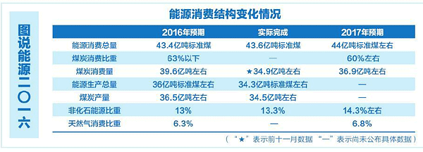 根據(jù)會議部署,2017年,我國一次能源消費(fèi)總量要控制在44億噸標(biāo)準(zhǔn)煤左右,非化石能源消費(fèi)比重提高到14.3%左右,天然氣消費(fèi)比重提高到6.8%左右,煤炭消費(fèi)比重下降到60%左右。