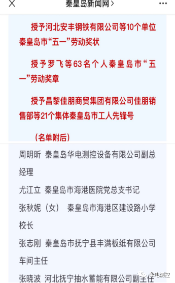 4月26日,秦皇島市“五一”勞動獎狀、“五一”勞動獎?wù)潞凸と讼蠕h號揭曉,秦皇島華電測控集團有限公司常務(wù)副總經(jīng)理周明昕同志被授予2022年秦皇島市“五一”勞動獎?wù)路Q號。獲此殊榮,華電測控集團全體員工向周明昕同志表示祝賀!