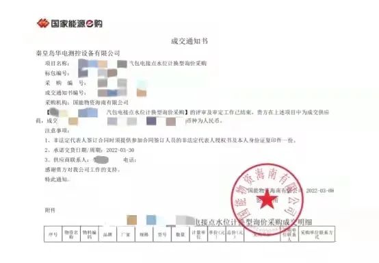 天道酬勤,力耕不欺。近日,我公司主營(yíng)產(chǎn)品“高精度取樣電極傳感器”再創(chuàng)佳績(jī)!成功中標(biāo)“國(guó)家能源集團(tuán)下屬某發(fā)電公司”公開(kāi)招標(biāo)的水位計(jì)改造項(xiàng)目。我公司在眾多投標(biāo)方中成功勝出,是公司雄厚實(shí)力的證明,是行業(yè)領(lǐng)先地位的體現(xiàn),是堅(jiān)守匠心制造的碩果。
