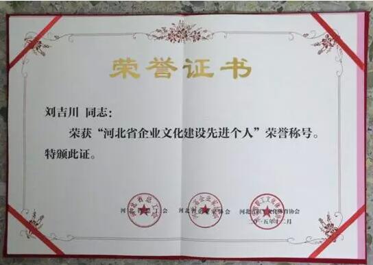 2015年12月22日,河北省企業(yè)文化建設(shè)研討會(huì)暨“河北省企業(yè)文化建設(shè)示范單位”授牌儀式在石家莊市舉行。秦皇島華電測(cè)控設(shè)備有限公司獲此殊榮,公司總經(jīng)理劉吉川先生榮獲“河北省企業(yè)文化建設(shè)先進(jìn)個(gè)人”榮譽(yù)稱號(hào)。公司黨支部書(shū)記、工會(huì)主席兼副總經(jīng)理劉劍鋒代表公司及總經(jīng)理劉吉川,上臺(tái)領(lǐng)取了“河北省企業(yè)文化建設(shè)示范單位”及“河北省企業(yè)文化建設(shè)先進(jìn)個(gè)人“獎(jiǎng)牌。