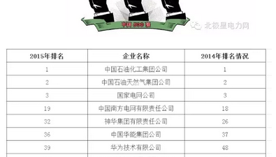 【榜單】2015中國企業(yè)500強:電力企業(yè)幾家上榜?” 2015-08-26北極星電力網(wǎng)獲悉:8月22日,“2015中國企業(yè)500強榜單”出爐,中國石化以2.89萬億元的總營收連續(xù)第十一年排名榜首,中國石油、國家電網(wǎng)分別以2.73萬億元、2.09萬億元的總營收分列二三位?! ≈档藐P(guān)注的是,互聯(lián)網(wǎng)公司中,京More