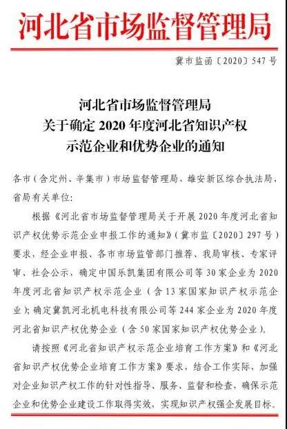 2020年4月,河北省市場監(jiān)督管理局組織申報(bào)2020年度河北省知識(shí)產(chǎn)權(quán)示范企業(yè)和優(yōu)勢企業(yè),我公司收到通知后,第一時(shí)間組織材料,填寫申請(qǐng),由區(qū)、市知識(shí)產(chǎn)權(quán)局推薦、省局審核、專家評(píng)審、社會(huì)公示的流程,近日獲悉華電測控獲評(píng)2020年度河北省知識(shí)產(chǎn)權(quán)優(yōu)勢企業(yè)!