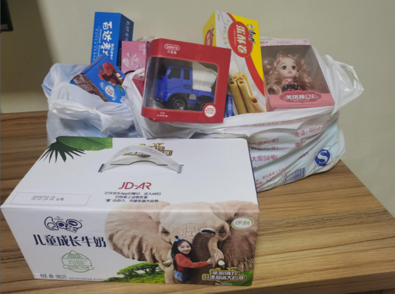 我公司員工發(fā)揚(yáng)華控集團(tuán)大愛(ài)無(wú)疆的精神,李江、李小濱當(dāng)晚在超市購(gòu)買了零食、牛奶、玩具、日用品等。