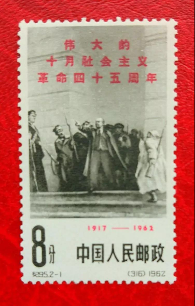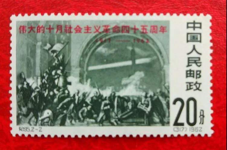 郵票記載歷史,郵票也在講故事。后來,郵電部又在1962年11月7日發(fā)行了紀95《偉大的十月社會主義革命45周年》的紀念郵票,全套2枚。2-1為"列寧和衛(wèi)兵" 。畫面中間為列寧。2-2為"攻打冬宮"。畫面再現(xiàn)了1917年11月7日,在列寧領(lǐng)導下,彼得格勒工人和士兵舉行武裝起義,并向俄國臨時政府所在地--冬宮發(fā)起總攻,臨時政府最終滅亡。