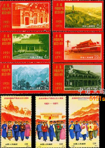 在1967年,我國郵電部發(fā)行了一套郵票,紀(jì)念毛主席創(chuàng)建井岡山革命根據(jù)地40周年。1967年6月,郵票設(shè)計人員開始郵票設(shè)計。8月上旬郵票圖稿設(shè)計完并報送中央有關(guān)部門審定之后,郵票圖稿經(jīng)郵票廠制版并打出樣票?!皠?chuàng)建井岡山革命根據(jù)地40周年”郵票編號為“文5”,郵票名稱為“紀(jì)念毛主席創(chuàng)建井岡山革命根據(jù)地四十周年”,發(fā)行日期為1967年10月1日,全套4枚,面值均為8分,影寫版。第一枚郵票圖案為毛主席和林彪在天安門城樓上。第二枚郵票圖案為毛澤東及其一行在井岡山會師。第三枚是毛主席語錄:“槍桿子里面出政權(quán)”。第四枚是毛主席詩詞:西江月?井岡山(一九二八年秋):“山下旌旗在望,山頭鼓角相聞。敵軍圍困萬千重,我自巋然不動?!碑?dāng)打出樣票準(zhǔn)備付印時,郵票廠接到上級有關(guān)部門的通知:“紀(jì)念毛主席創(chuàng)建井岡山革命根據(jù)地40周年”郵票,取消發(fā)行,郵票印樣全部銷毀,于是,這套紀(jì)念郵票被銷毀,在銷毀過程中流失了一部份,但數(shù)量極少,十分珍貴。據(jù)有關(guān)雜志報道,1981年美國一家郵商在日本東京舉行郵票拍賣時,曾在目錄上刊出過這套郵票中的第一枚。1997年11月21日北京郵星貿(mào)易總公司在上海舉行的拍賣會,1枚紀(jì)念毛主席創(chuàng)建井岡山革命根據(jù)地40周年郵票,上品,底價150萬元(人民幣),未拍出。
