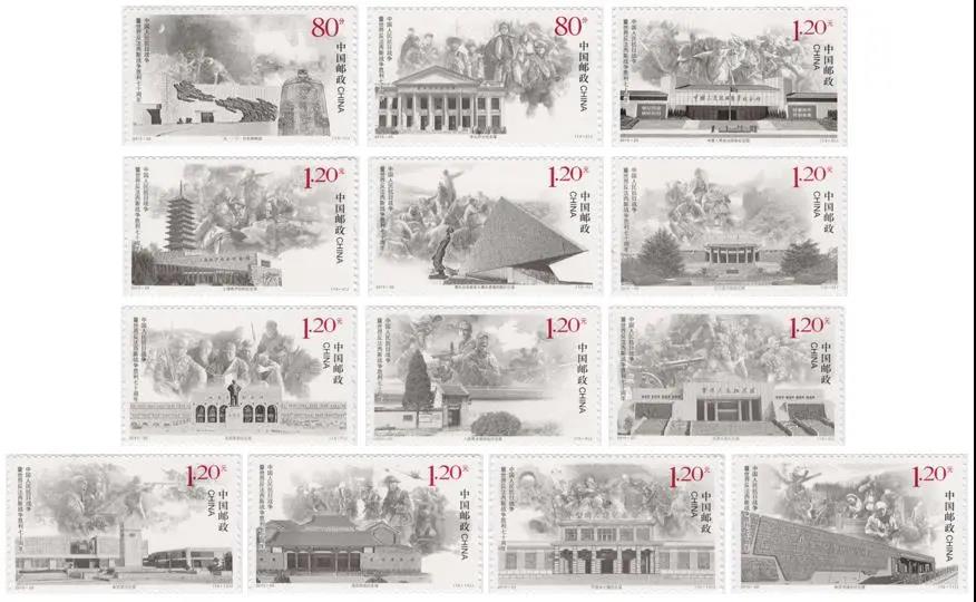 2015年9月3日上午,《中國人民抗日戰(zhàn)爭暨世界反法西斯戰(zhàn)爭勝利七十周年》紀(jì)念郵票首發(fā)式在西安市郵政公司舉行,本套郵票共13枚,小型張1枚。全套郵票面值為20.8元?!吨袊嗣窨谷諔?zhàn)爭暨世界反法西斯戰(zhàn)爭勝利七十周年》紀(jì)念郵票,是我國歷次紀(jì)念抗戰(zhàn)勝利題材郵票當(dāng)中發(fā)行枚數(shù)最多的一套。郵票內(nèi)容分別為:1.“九一八”歷史博物館;2.東北烈士紀(jì)念館;3.中國人民抗日戰(zhàn)爭紀(jì)念館;4.上海淞滬抗戰(zhàn)紀(jì)念館;5.侵華日軍南京大屠殺遇難同胞紀(jì)念館;6.臺兒莊大戰(zhàn)紀(jì)念館;7.延安革命紀(jì)念館;8.八路軍總部舊址紀(jì)念館;9.百團(tuán)大戰(zhàn)紀(jì)念館;10.平型關(guān)大捷紀(jì)念館;11.冉莊地道戰(zhàn)紀(jì)念館;12.新四軍紀(jì)念館;13.滇西抗戰(zhàn)紀(jì)念館。小型張畫面以《大刀進(jìn)行曲》雕塑、長城、紅綢、和平鴿為主要元素,與中國人民抗日戰(zhàn)爭暨世界反法西斯戰(zhàn)爭勝利七十周年紀(jì)念活動標(biāo)識相互呼應(yīng),融為一體。