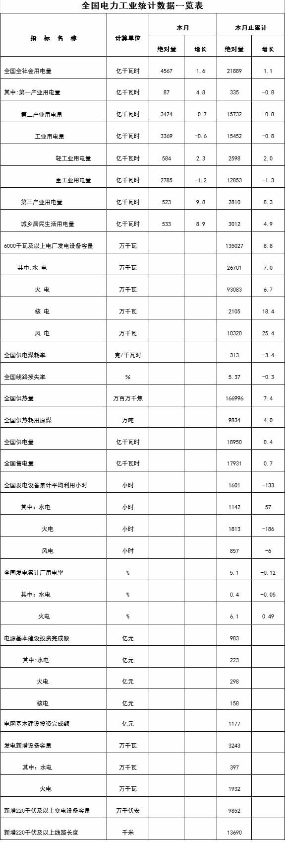 附:全國電力工業(yè)統(tǒng)計數(shù)據(jù)
