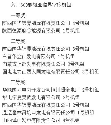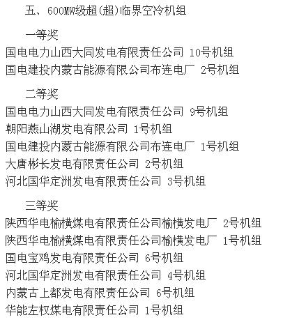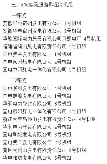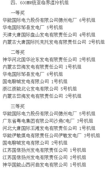 全國火電600MW級機組能效對標(biāo)及競賽成果發(fā)布會,是對上一年度全國火電600MW級機組整體生產(chǎn)運行和管理工作的一次回顧和總結(jié),是對機組運行和管理水平較好的企業(yè)和機組的全面肯定和確認。2016年上半年,機組競賽工作經(jīng)過匯總及公示程序后,機組競賽辦公室組織各集團專家對排名靠前機組進行了現(xiàn)場排查,對數(shù)據(jù)異常機組進行了現(xiàn)場核查,經(jīng)機組競賽專家委員會研究,按競賽管理辦法中20%獲獎范圍的規(guī)定,最終確定了七種類型機組中共102臺機組獲得一、二、三等獎(見附件1)。此外,還通過向各發(fā)電集團核實的方式統(tǒng)計匯總了各類型機組中供電煤耗、廠用電率指標(biāo)最優(yōu)機組(見附件2、附件3)。