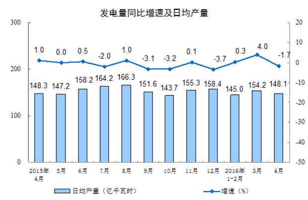 國家統(tǒng)計局:4月全國發(fā)電量4444億千瓦時下降1.7%