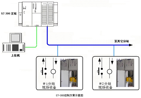 整套系統(tǒng)采用S7-300集中控制方式,共設(shè)置一個主站和六個就地控制柜。