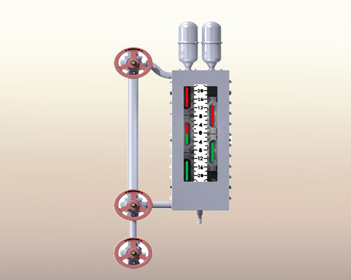 在水位計(jì)本體上設(shè)置兩列多個(gè)窗口,全量程范圍內(nèi)水位顯示無盲區(qū)。