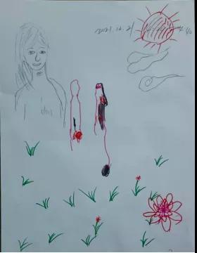 另一幅畫的作者,說(shuō)自己畫這畫時(shí),心里感覺(jué)可幸福了。坐在小船里的人就是自己,正在大海中徜徉。海岸上有很多的花兒開(kāi)放著,還有一顆大樹(shù)。當(dāng)然還有自己的愛(ài)人和孩子,藍(lán)藍(lán)的天空,一個(gè)大大的太陽(yáng)。