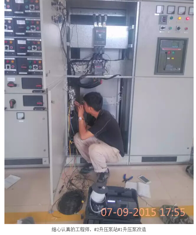 同時在同一地點(diǎn)的另一施工現(xiàn)場,在公司總工程師、工程部經(jīng)理姜崇明領(lǐng)導(dǎo)下,水廠的無人化值守程控部分改造緊鑼密鼓的推進(jìn)。#2升壓泵站的變頻自動供水、節(jié)水泵站遠(yuǎn)程自動控制、二級泵站供水閥自動、全廠排污坑自動排水、取水泵站取水泵和液控閥聯(lián)動自動供水、全廠視頻監(jiān)控系統(tǒng)等等,一個又一個的技術(shù)難點(diǎn)被攻克,一個又一個的系統(tǒng)被優(yōu)化,得到的是客戶滿意的微笑,收獲得是公司員工的成長。