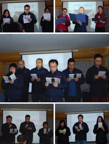 此次朗誦比賽高潮迭起、異彩紛呈,各個(gè)部門在選材、朗誦形式、服裝隊(duì)形等方面別出心裁、力求不凡:國(guó)貿(mào)部學(xué)貫中西,用中英雙語(yǔ)朗誦了《弟子規(guī)》,讓人眼前一亮;工程部借著快板演出,鏗鏘有力地朗誦,將比賽推向高潮;管理部更是將《弟子規(guī)》帶入了家庭,開(kāi)場(chǎng)就是子女的誦讀錄音,伴著統(tǒng)一的傳統(tǒng)服飾,一出場(chǎng)就讓古韻流淌、文化傳承……每個(gè)部門都用自己的方式詮釋了《弟子規(guī)》的內(nèi)涵,每個(gè)節(jié)目都發(fā)人深思。這些精彩的節(jié)目源自于大家對(duì)《弟子規(guī)》精神的深入理解和持續(xù)踐行。最終,工程部脫穎而出,獲得了本次比賽的一等獎(jiǎng),管理部和生產(chǎn)部也分獲二、三等獎(jiǎng)。