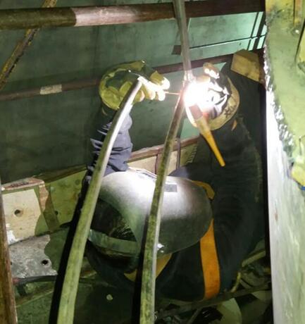 此次工程時(shí)間緊張、工作量大,更加考驗(yàn)我們的是工作現(xiàn)場的超高溫度,經(jīng)電廠人員告知,我方施工區(qū)域的平均溫度一直處于40℃-50℃,峰值達(dá)53℃!它時(shí)時(shí)刻刻考驗(yàn)著我們的耐性,透支著我們的體力。