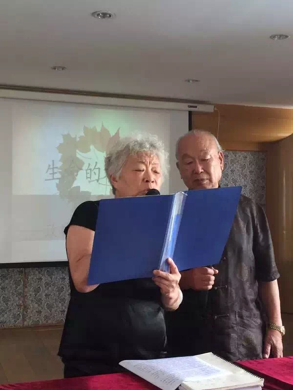 楊姨盡管已是80高齡,但精神矍鑠,聲音洪亮,腰板挺直,乍看像60來歲的人。她與高齡83歲的愛侶攜手前來,盈盈淺笑,光彩照人,見之忘憂。她和老伴朗誦了他們共同寫就的詩,《寫給老伴的悄悄話》,聲情并茂,場面感人。然后,楊女士用中、英雙語作了自我介紹,語言流利,悅耳動聽。
