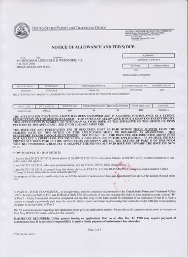 好消息:公司于2014年7月向美國(guó)提交的“汽包水位磁致液位計(jì)”發(fā)明專利申請(qǐng),經(jīng)過(guò)美國(guó)知識(shí)產(chǎn)權(quán)局嚴(yán)謹(jǐn)認(rèn)真的審查,已經(jīng)授予了發(fā)明專利權(quán)。這是我公司獲得的第35項(xiàng)自主知識(shí)產(chǎn)權(quán)。