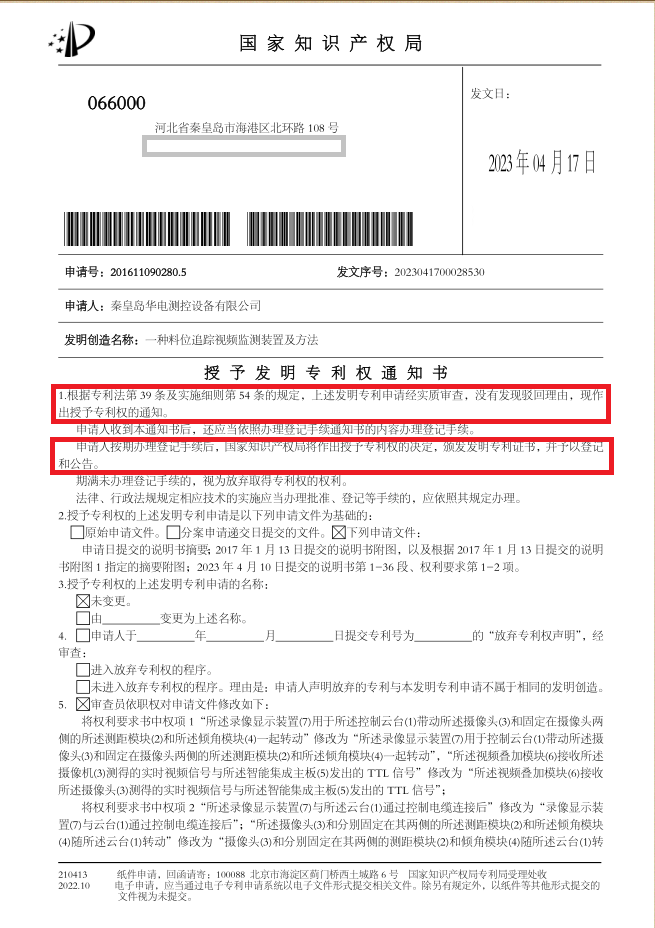 秦皇島華電測控集團(tuán)董事長劉吉川先生受邀赴烏蘭察布考察” 2023-06-07一年春作首,萬事行為先。近日,秦皇島華電測控集團(tuán)有限公司董事長劉吉川先生一行人受到烏蘭察布建設(shè)管理委員會邀請進(jìn)行項目實地考察?! ?月19日上午,劉吉川董事長在當(dāng)?shù)?/div>More4月19日下午,全市兩新組織黨建工作調(diào)度會議在市民中心8504會議室召開。會上宣讀了《關(guān)于印發(fā)2023 年度非公企業(yè)和社會組織“星級黨組織”評定結(jié)果的通知》并為More秦皇島華電測控設(shè)備有限公司又獲一項發(fā)明專利” 2023-06-07我公司發(fā)明專利《一種料位追蹤視頻檢測裝置及方法》(專利號201611090280.5)被國家知識產(chǎn)權(quán)局正式授予專利權(quán)。 2023年4月17日,秦皇島華電測控設(shè)備有限公司收到國家知識產(chǎn)權(quán)More萬物勃發(fā)春光好,處處皆聞奮蹄聲?! 〈禾焓且粋€富有生命力的季節(jié),也是一個美麗且充滿希望的季節(jié)!萬物復(fù)蘇,百花齊放,正如秦皇島華電測控集團(tuán)第一季度的業(yè)績一般,遍地花開,一More2023年4月15日,人社部2023年全國大中城市巡回招聘-燕山大學(xué)站暨燕山大學(xué)2023屆畢業(yè)生春季就業(yè)洽談會在西校區(qū)里仁教學(xué)樓舉辦。我公司受邀參加了本次就業(yè)洽談會,集團(tuán)常務(wù)副More華電測控集團(tuán)董事長劉吉川邀華潤電力赴烏拉特中旗參加政府招商引資洽談會” 2023-06-072023年4月12日,華電測控集團(tuán)董事長劉吉川先生邀華潤電力內(nèi)蒙古新能源公司項目部相關(guān)負(fù)責(zé)人赴烏拉特中旗參加政府招商引資工作洽談會,為企業(yè)經(jīng)營和經(jīng)濟(jì)發(fā)展助力賦能?! ?/div>More喜報:華電測控正式加入內(nèi)蒙古綠色產(chǎn)業(yè)促進(jìn)會碳中和專業(yè)委員會!為廣泛團(tuán)結(jié)和凝聚內(nèi)蒙古自治區(qū)“碳達(dá)峰、碳中和”各方力量,搭建信息交流、學(xué)術(shù)研究和技術(shù)推廣服務(wù)平臺More華電測控參加2023年全國“安全生產(chǎn)月”活動啟動” 2023-05-31今年6月是第22個全國“安全生產(chǎn)月”。5月31日上午國務(wù)院安委辦、應(yīng)急管理部、省安委辦、省應(yīng)急管理廳召開2023年全國、全省“安全生產(chǎn)月”活動視頻會議More華電測控參加第十一屆國際清潔供暖空調(diào)熱泵展覽會” 2023-05-285月20日,內(nèi)蒙古第十一屆國際清潔供暖空調(diào)熱泵展會第二天,秦皇島華電測控集團(tuán)子公司-內(nèi)蒙古華電測控環(huán)??萍加邢薰荆ㄏ路Q“內(nèi)蒙古華電測控”)攜旗下主打產(chǎn)品、核心技More祝賀秦皇島華電測控設(shè)備有限公司獲批建筑施工安全生產(chǎn)許可證書” 2023-05-272023年5月,一則喜訊從河北省住房和城鄉(xiāng)建設(shè)廳傳來:我公司以完備的安全生產(chǎn)管理機(jī)構(gòu)、健全的安全生產(chǎn)責(zé)任制等順利通過安全生產(chǎn)許可新申請,并獲得了河北省住房和城鄉(xiāng)建設(shè)廳頒發(fā)More日前,秦皇島市總工會《關(guān)于授予2023年秦皇島市五一勞動獎和秦皇島市工人先鋒號的決定》(秦工字﹝2023﹞36 號)文件知悉,秦皇島華電測控設(shè)備有限公司“崔明思創(chuàng)新工作室&rdMore